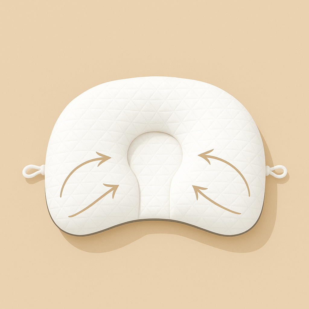 כרית חכמה עם מבנה קעור במרכז המותאם לאנטומיה העדינה של תינוקות. 3 אזורי תמיכה מפולחים מפזרים לחץ באופן שווה ומעודדים שימור ראש עגול תוך תמיכה בעמוד השדרה הצווארי וביציבה נכונה בזמן שינה 🌙