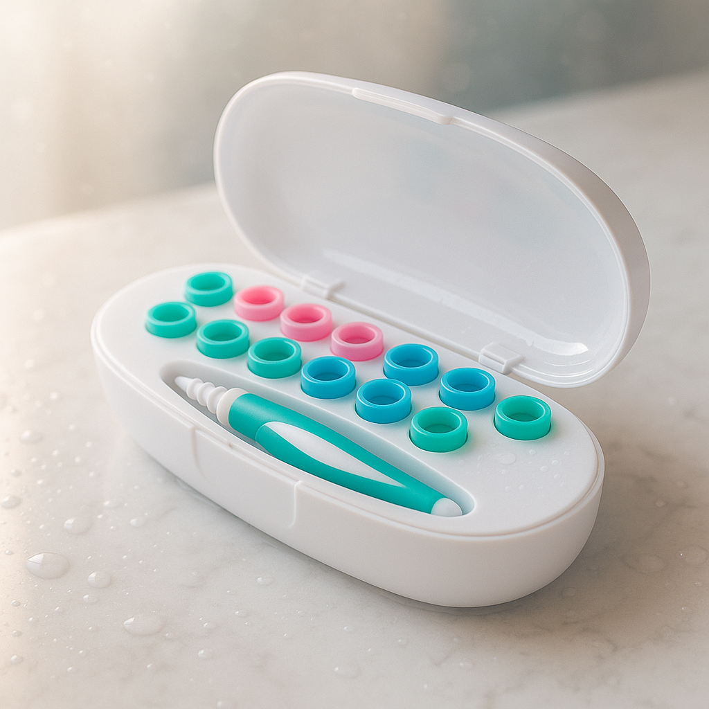 ניקוי: שטפו את הראשים במים פושרים וסבון עדין לאחר כל שימוש. ייבשו היטב לפני החזרה לקופסה. אחסון: שמרו את הסט בקופסה הקשיחה במקום יבש ונקי. החלפה: החליפו ראש חדש לפי הצורך לשמירה על היגיינה מרבית. בטיחות: אין להחדיר את הראש לעומק רב מדי (לא יותר מ-2.5 ס"מ). במקרה של אי נוחות או כאב, הפסיקו את השימוש ופנו לרופא.